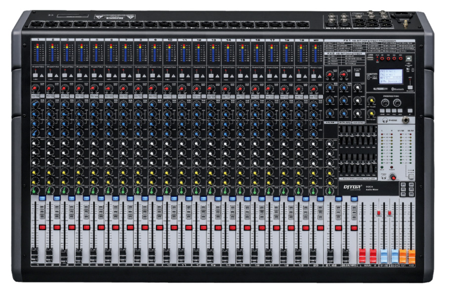 输入(24CH)20路MIC/Line模拟前级处理(XLR 母插头和¼" TRS 组合输入接口)单声道输入,2路立体声输入(¼"TRS接口+XLR母插头),1路USB立体声输入(选择共用);